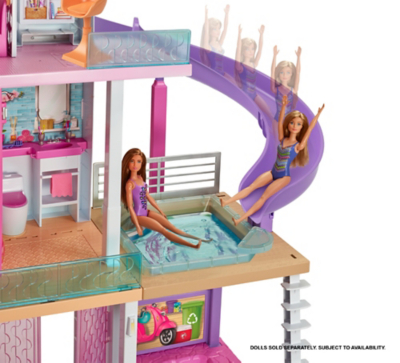 Only 1 available and its in 2 peoples carts. More than 3 feet tall and 4 feet wide the Barbie DreamHouse has so many amazing features -- three stories eight rooms that include a carport car not included and a home office a working elevator that fits four dolls a pool that has a slide descending from the story. Barbie Dreamtopia Sale.